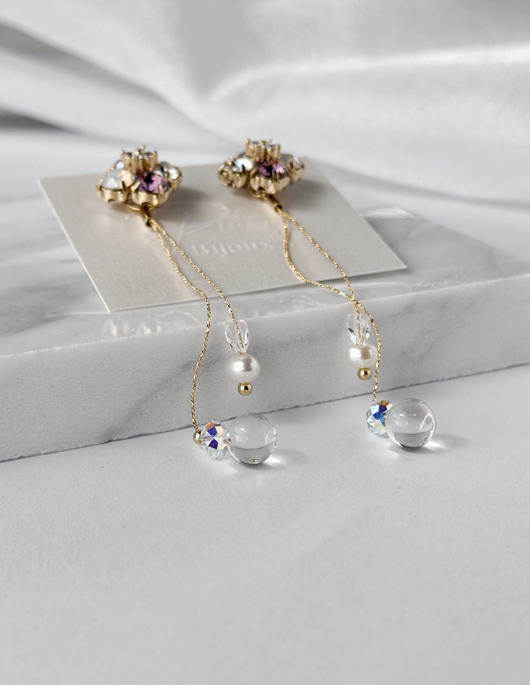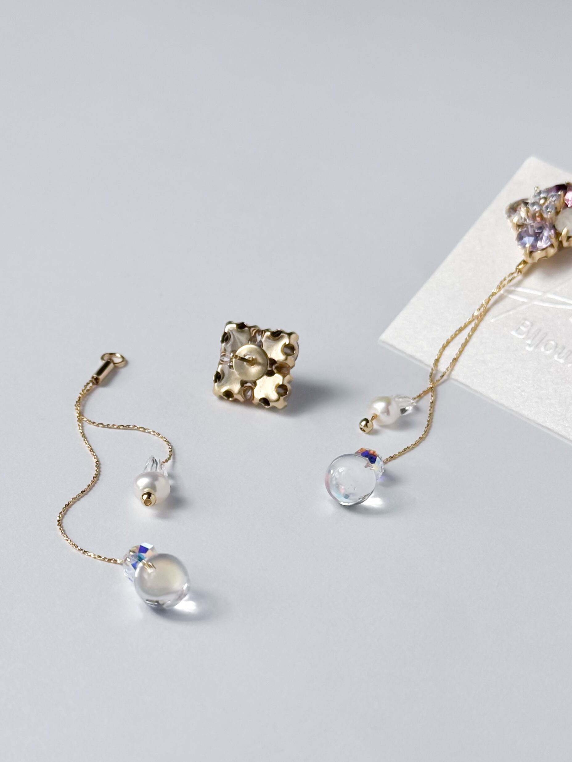 そんな幻想的なカラーをまとったスクエア型ビジューピアスです。