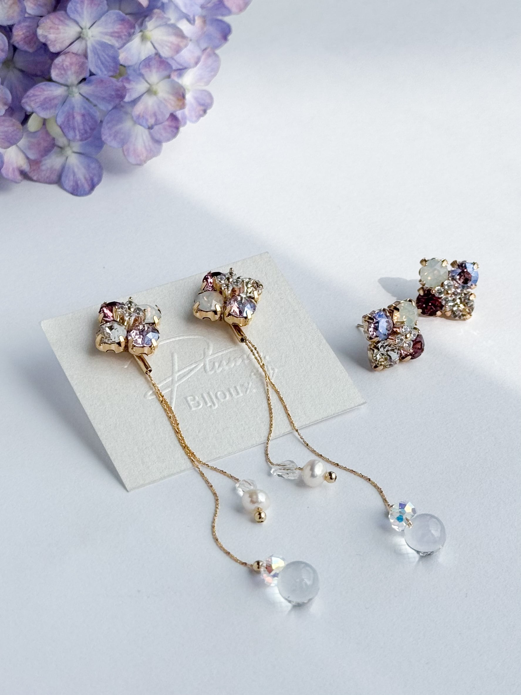 【2way】紫陽花カラー スクエアビジューピアス/イヤリング