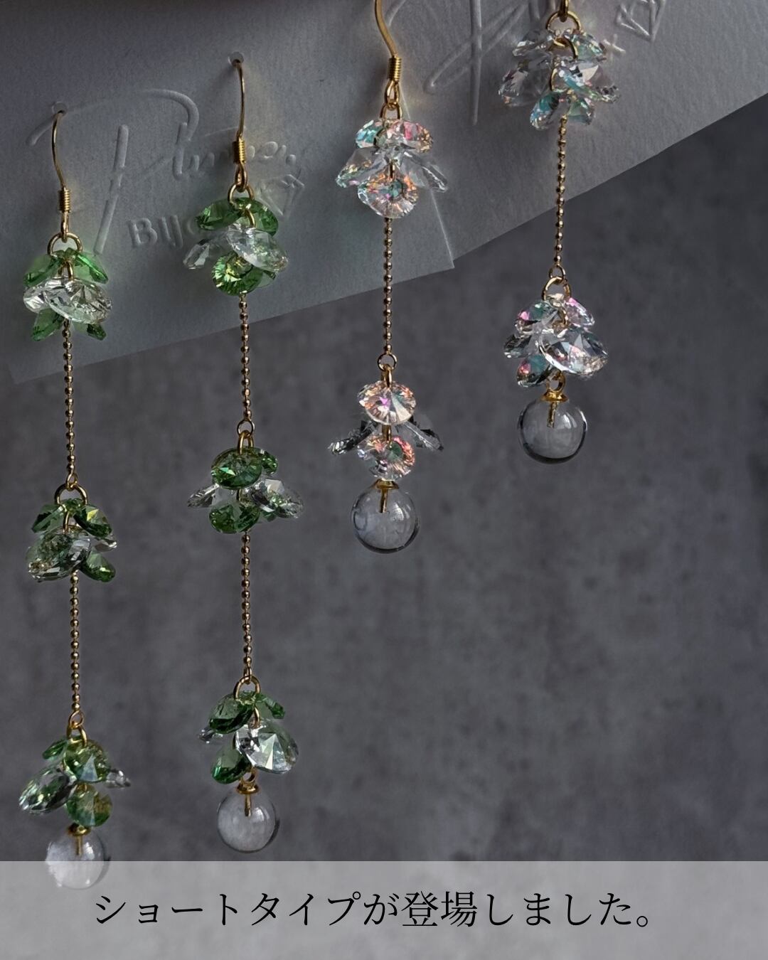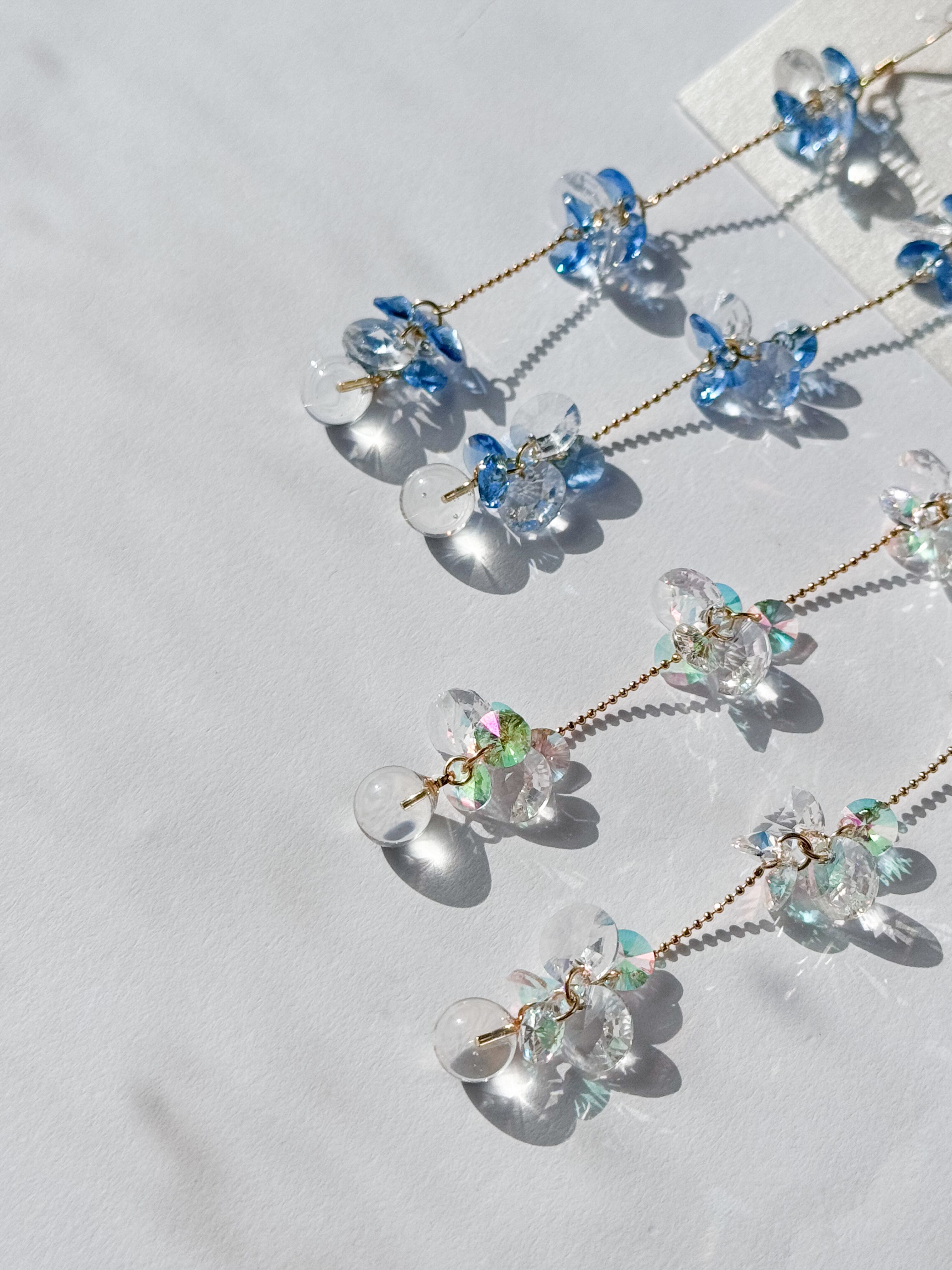 極上の透明感をもつスワロフスキーが連なり、優雅に揺れるロングシルエットが、顔まわりにドラマティックな輝きを添えます。