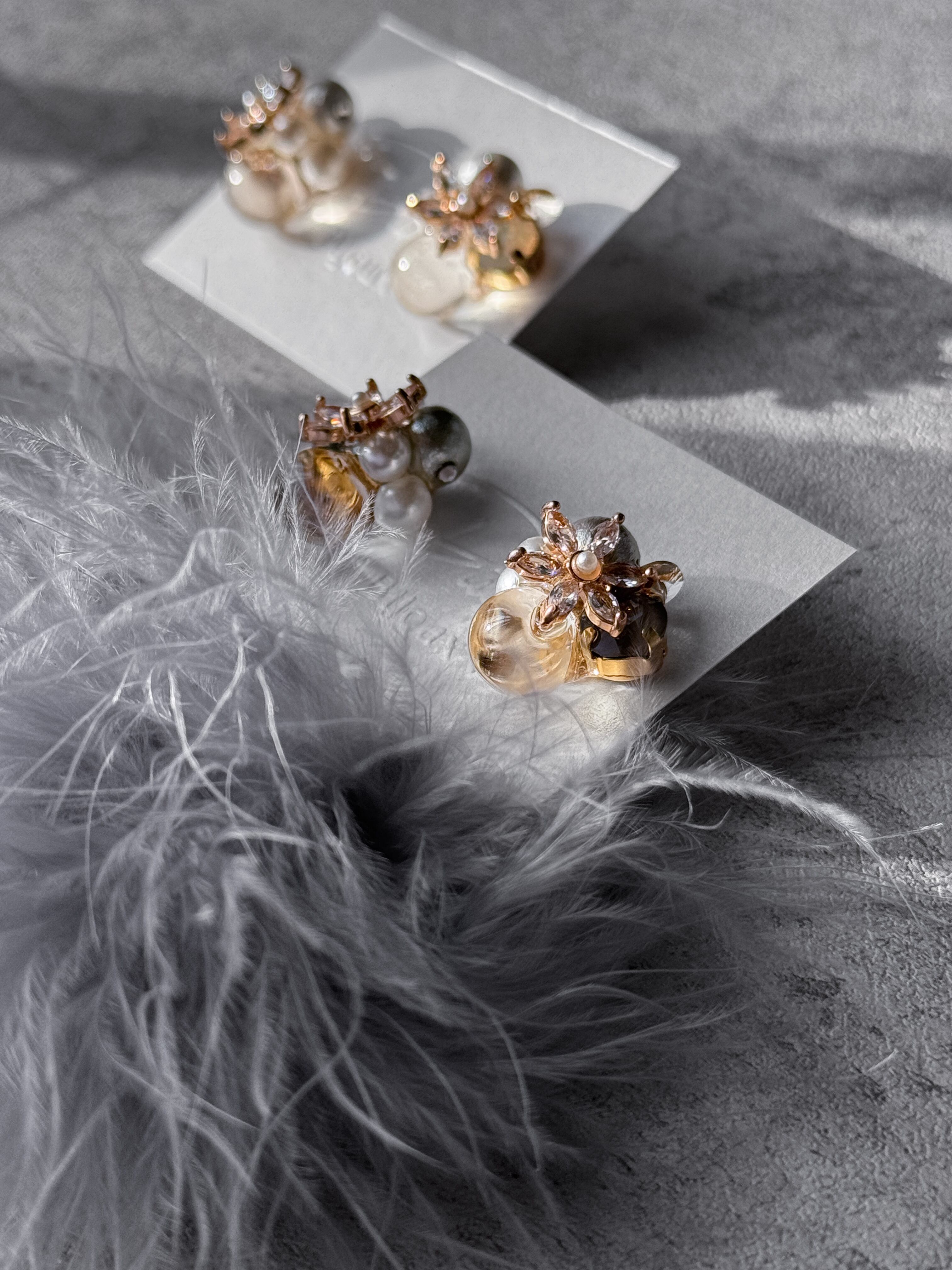 • パール×透明感レジン×クリスタルガラスの奥行きあるきらめき