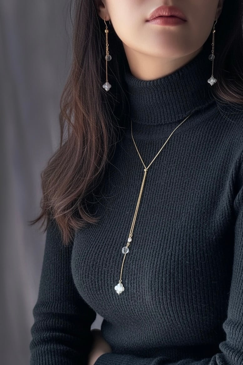 ネックレスとピアスをセットで身につけると、