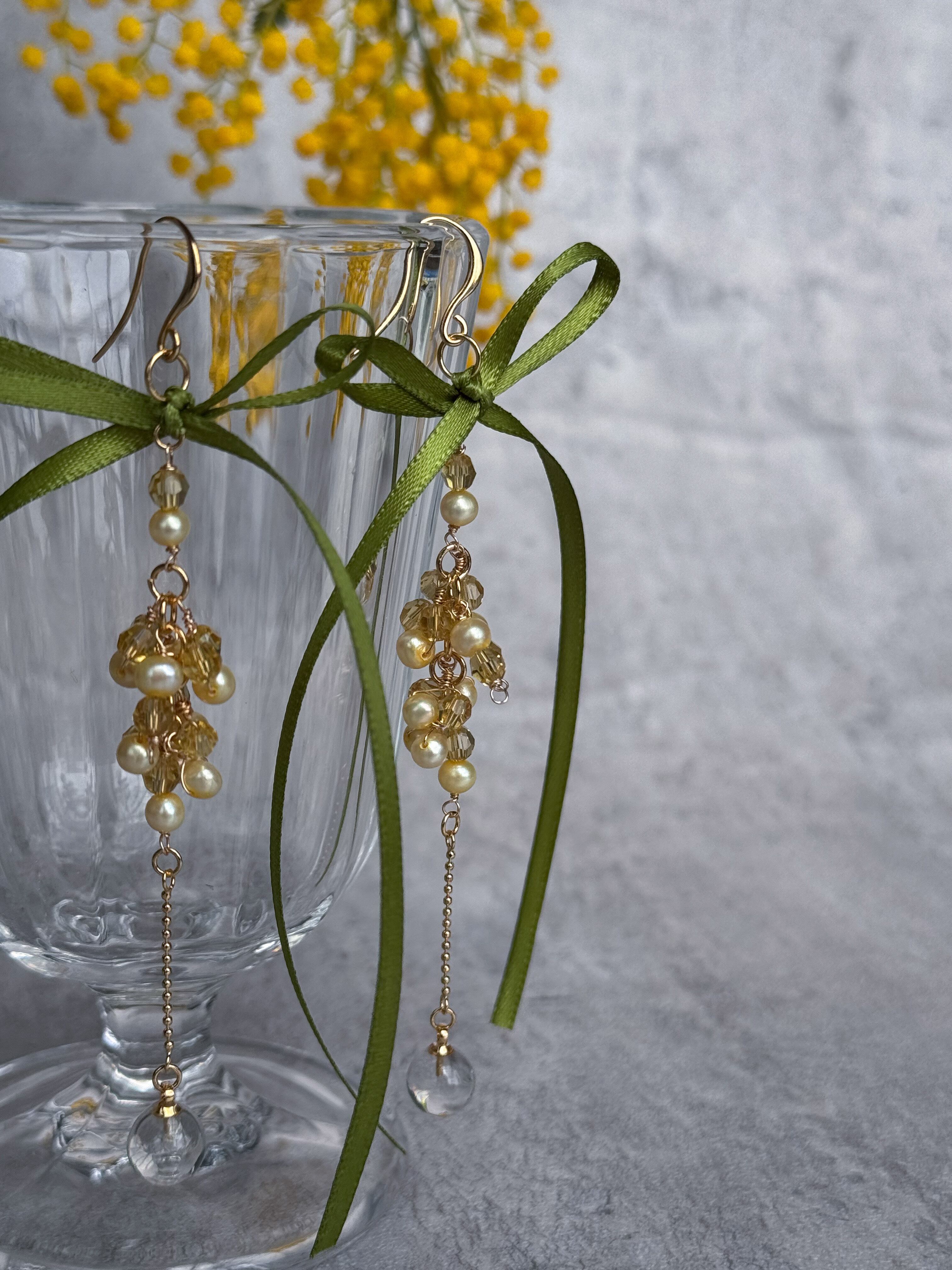 使用素材 淡水パール スワロフスキークリスタル K16gp レジン サテンリボン