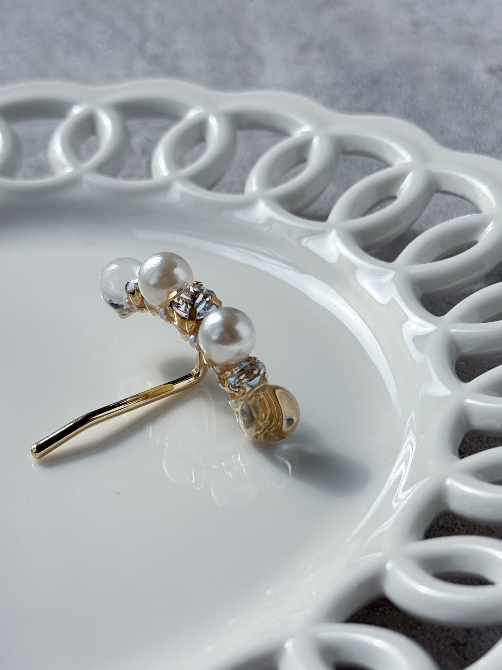 ビジューと淡水パールを組み合わせたポニーフックは、