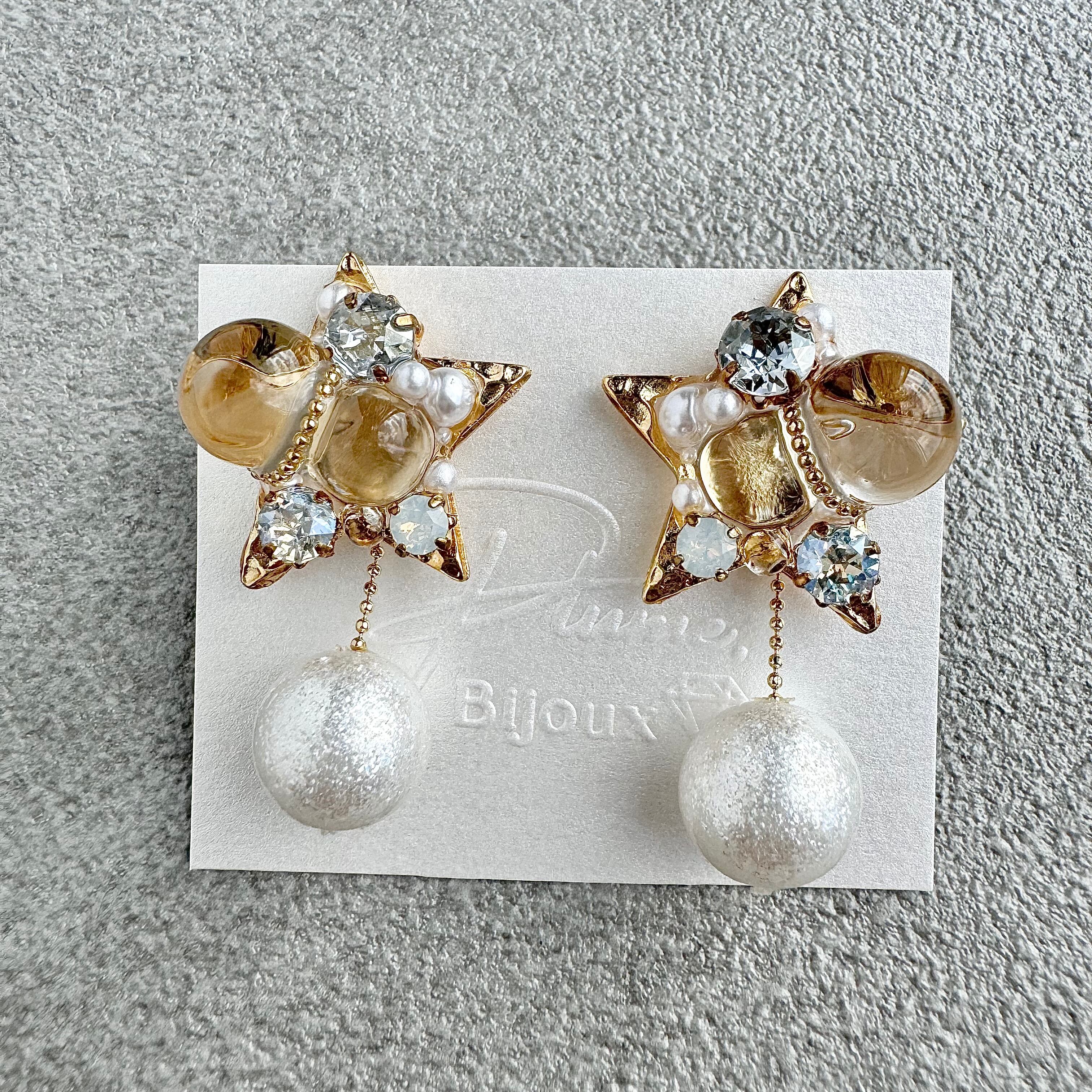 一番星をイメージし色も大きさも様々なスワロフスキーを使用したとびきり煌めくスターアイテム。