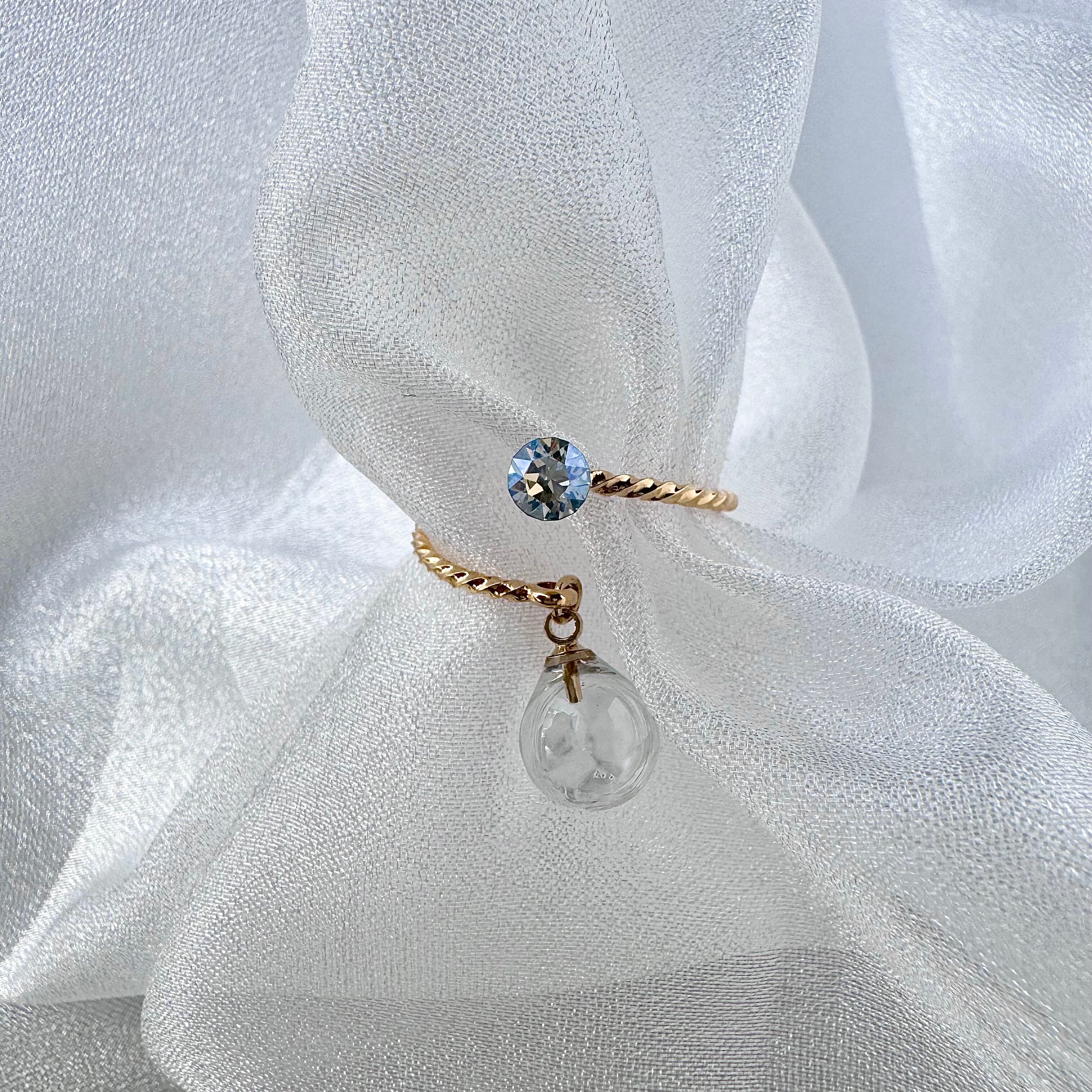 透明感たっぷりの球体が動きに合わせてぷるぷる揺れる姿が可愛くて思わず見てしまうリング