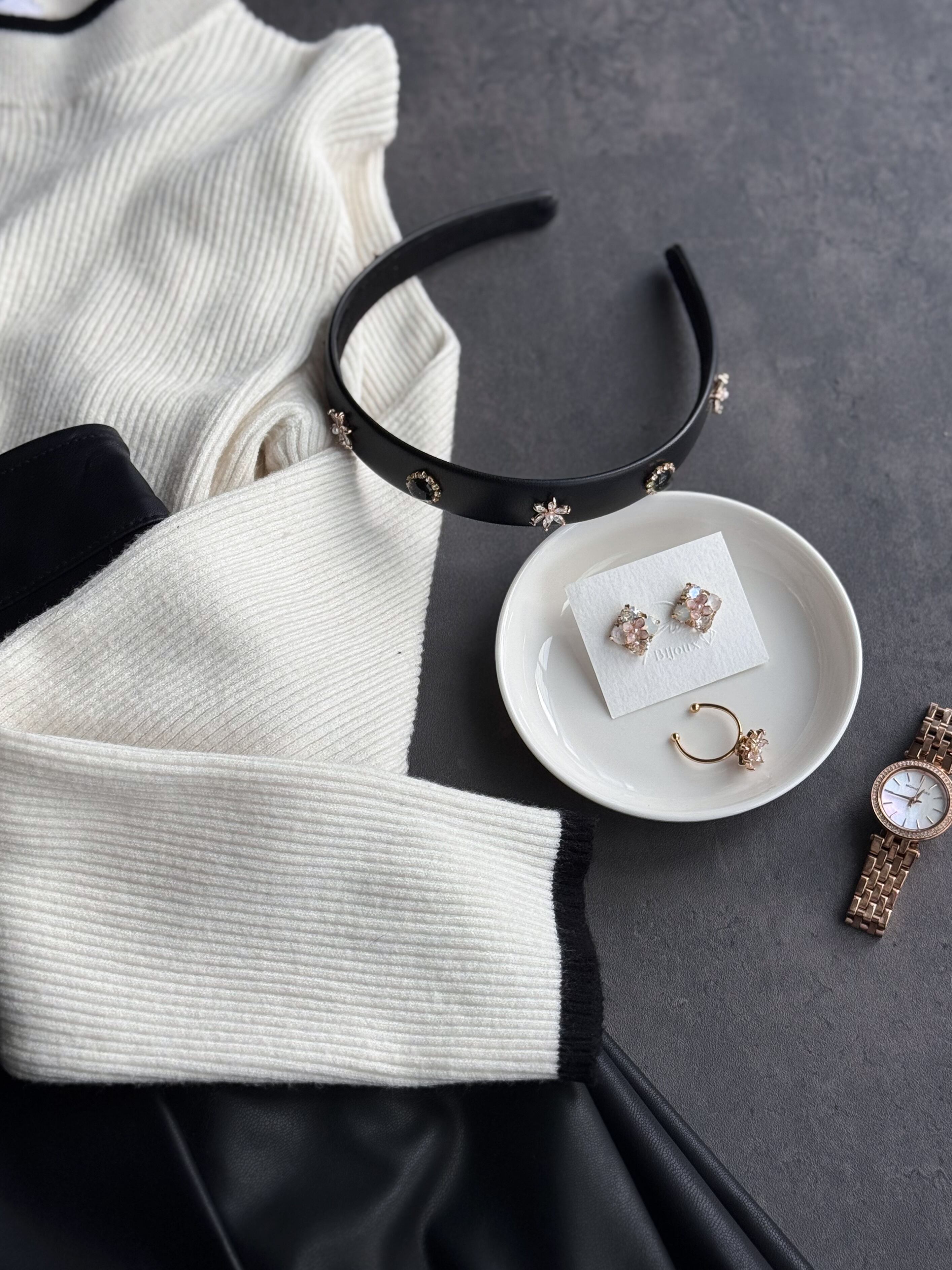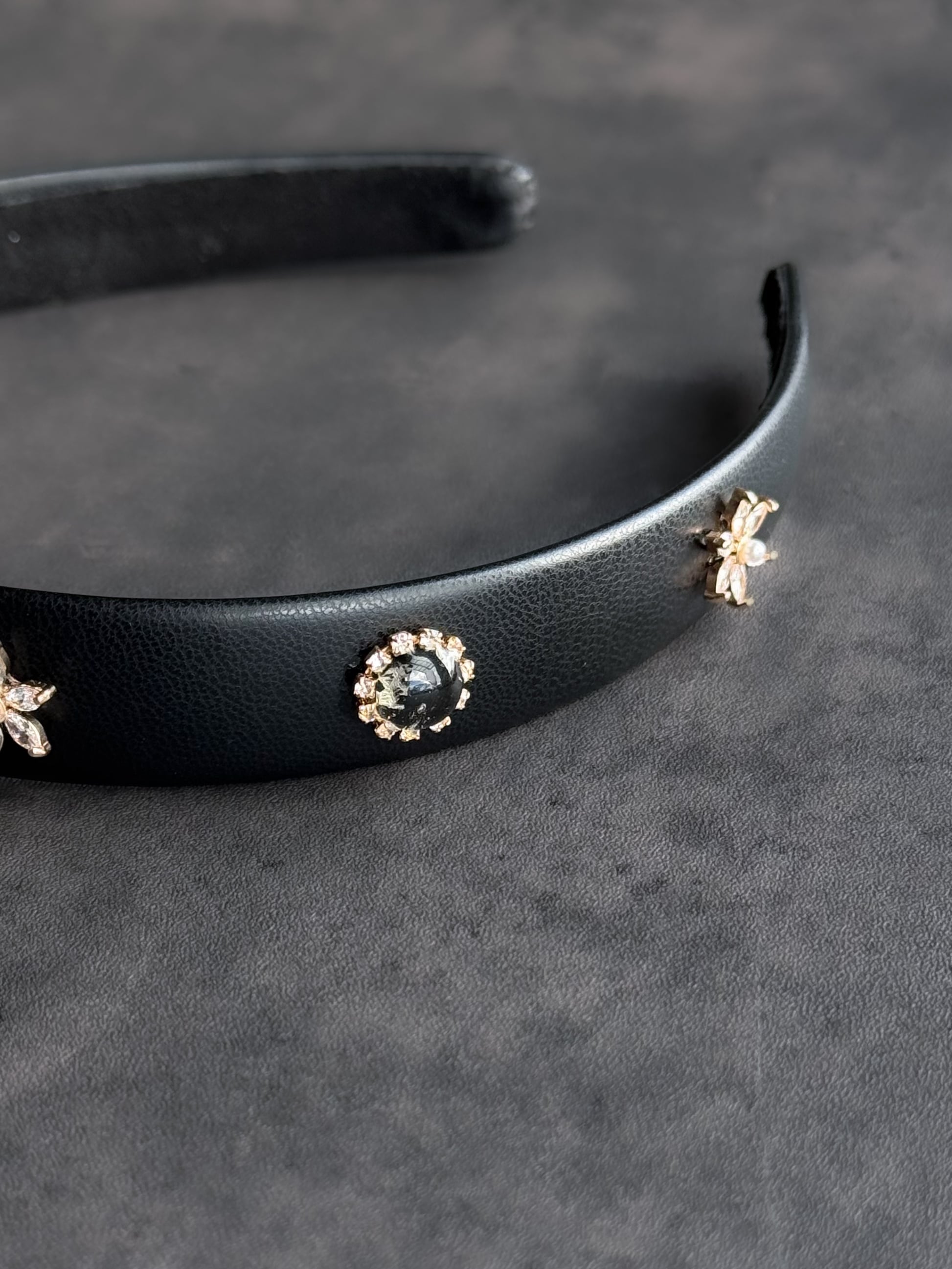 レザー×ビジュー カチューシャ