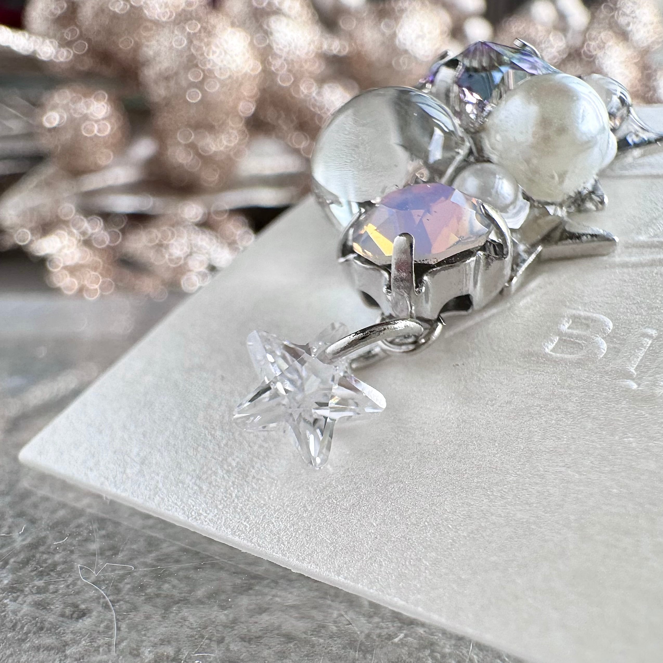 ほんのりロマンチックなカラーのクリスタルガラスを合わせた涼し気なシルバー